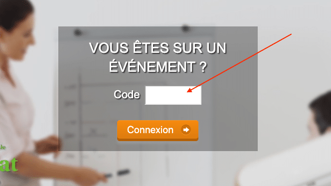 1- Dans un premier temps vous devrez remplir un code de connexion à l’événement, celui-ci vous sera donné en début de séance.